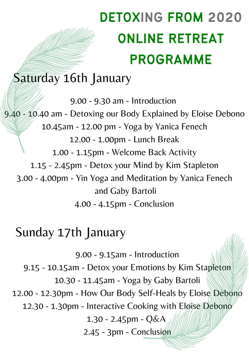 2020 was definitely not an easy year for anyone around the world! Hence we thought that this January 2021 would be the perfect opportunity to detox physically, mentally, emotionally and spiritually. This is where a group of women teamed up to build a 2 day programme specifically aimed at doing just that! So join us on this journey to detox 2020 and start off the new year with a fresh mindset and sense of self